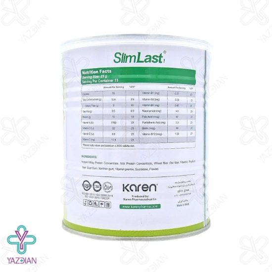 افرادی که تمایل به کاهش وزن و لاغری دارند باید از یک محصول مناسب استفاده کنند، پودر لاغری اسلیم لست سیب کارن – 300 گرم( Slim last Apple Karen Weight loss Poweder – 300 gr) با کاهش اشتها باعث کاهش وزن شخص می شود و از طرفی دیگر با افزوده شدن ویتامین های مورد نیاز بدن به آن نقش تاثیرگذاری در فراهم کردن نیازهای تغذیه ای در دوران کاهش وزن دارد، این محصول برای حفظ وزن بدن و یا کاهش وزن مصرف می شود، از دیگر ویژگی های این محصول این است که بدون هیچ گونه افزودنی با اثر دارویی کاهش اشتها و جلوگیری از مبتلا شدن به یبوست است، این پودر لاغری برای افراد دیابتی نیز مناسب است زیرا موجب کم شدن تری گلیسیرید و کلسترول خون می شود و هم چنین دارای طعم دل نشین هلو است، فیبر پسیلیوم از ترکیبات به کار رفته در این محصول است که با ایجاد احساس سیری به مدت طولانی از پرخوری پیشگیری کرده و به بهبود عملکرد دستگاه گوارش کمک می کند، وجود پروتئین سویا نیز به حفظ توده ی عضلانی در طول رژیم کمک کرده و متابولیسم را افزایش می دهد، ویتامین ها و مواد معدنی هم به فراهم کردن انرژی بدن و تقویت سیستم ایمنی کمک کرده و از ضعف ناشی از رژیم غذایی پیشگیری می کند، هم چنین کربوهیدرات پیچیده میزان انرژی لازم برای فعالیت های روزانه را بدون ایجاد افزایش ناگهانی قند خون تامین می کند.