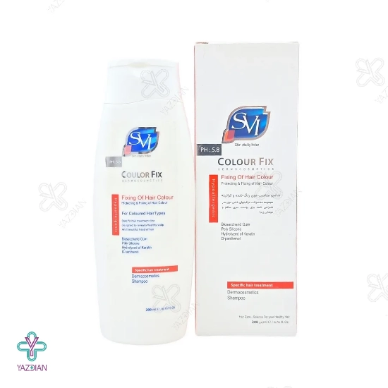 شامپو کالر فیکس اس وی آی مناسب موهای رنگ شده و کراتینه (SVI Colour Fix Shampoo 200 ml) با دارا بودن کراتین، ویتامین B5 و دیگر ترکیبات مؤثر و مفید موجود در فرمولاسیون خود می تواند بر روی موها لایه ای محافظتی ایجاد کرده و ضمن احیا و تثبیت نمودن رنگ موها، باعث ترمیم و بازسازی بافت های مو شود؛ همچنین نرمی، درخشندگی و حالت پذیری موها را افزایش دهد.