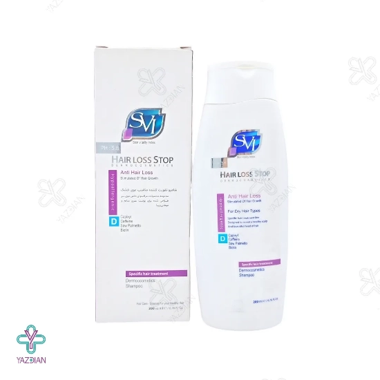 شامپو تقویت کننده هیر لاس استاپ دی موهای خشک اس وی آی (SVI Hair Loss Shampoo For Dry Hair 200 ml) جریان خون محیطی را افزایش داده و هم چنین با تقویت و تغذیه ی فولیکول مو ریزش موی سر را کم می کند. این محصول برای استفاده در تمامی موها مناسب بوده و موهای آسیب دیده و خشک را ترمیم و هم چنین سبب محکم شدن تارهای مو می شود. از دیگر ویژگی های این شامپو این است که سبب خون رسانی به پوست سر شده و در نتیجه باعث رشد موها می شود.