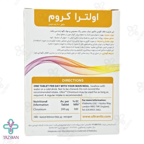 قرص اولترا کروم 200 میکروگرم ویتابیوتیکس (Vitabiotics Uitra Chromium 60 Tabiets) یک مکمل موثر است که میزان گلوکز خون را در سطح نرمال حفظ می کند.