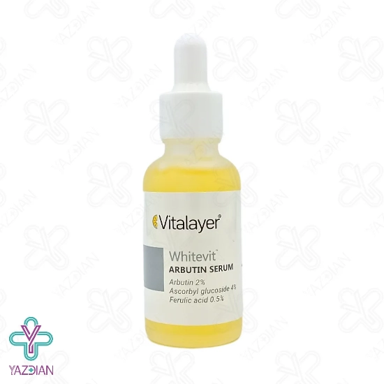 سرم ضد لک آربوتین وایت ویت ویتالیر - 30 میلی لیتر (Vitalayer Whitevit Arbutin Serum ۳۰ ml) یک محصول عالی جهت کنترل و کاهش لک و تیرگی های پوستی می باشد؛ چرا که حاوی ترکیب آربوتین که یک روشن کننده موضعی پوست است می باشد. آربوتین با مهار عملکرد آنزیم تیروزیناز، هیپرپیگمنتاسیون را متوقف می کند. از دیگر مشتقات طبیعی بکار گیری شده در این سرم فرولیک اسید می باشد. فرولیک اسید یک آنتی اکسیدان است که بطور طبیعی در مواد غذایی مصرفی یافت می شود. این آنتی اکسیدان، رنگدانه های پوستی را یکدست می کند و ساختار پوست را بهبود می بخشد.