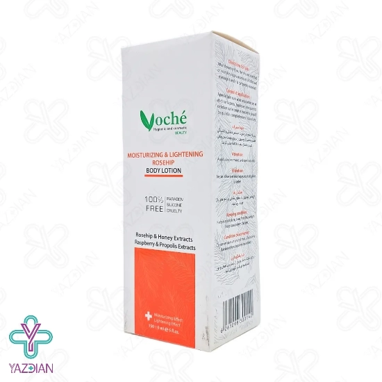 لوسیون مرطوب کننده و شفاف کننده رزهیپ وچه - 150 میلی لیتر (Voche Rosehip Moisturizing Body Lotion ۱۵۰ ml) ساخت شرکت محبوب توسعه کسر آسیا در کشور عزیزمان ایران می باشد که بدلیل بافت بسیار سبکی که دارد، به آسانی روی پوست پخش می شود و روی پوست سنگینی نمی کند.