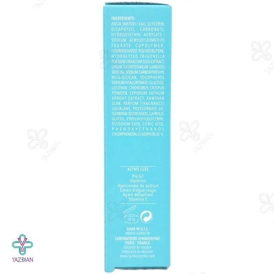 CI42090 (آبی 1)، آب، کلرفنسین، گلیسیرین، فنوکسی اتانول، سیکاپریل کربنات، سیتریک اسید، هیدروکسی اتیل آکریلات/سدیم آکریلویل دی متیل تائورات کپلیمر، دی سدیم ا د ت آ، پلی ایزوبوتن هیدروژنه، اتیل هگزی گلیسیرین، عصاره هیدرولیز شده دانه Trigonella foenumgreacum، کاپریلیل گلایکول، سدیم کربوکسی متیل بتا-گلوکان، سوربیتان ایزوتتیارت، توکوفرول، پلی سوربات-60، سدیم هیالورونات، رایحه (عطر)، گلوکز، زانتان گام، لسیتین، عصاره گیاه شاهی، پودر عصاره خزه ایرلندی.