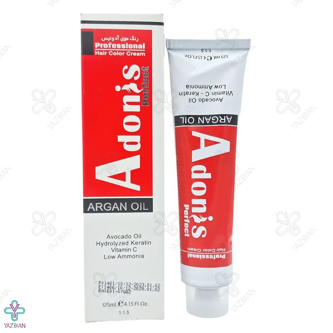 رنگ مو شماره N10 آدونیس بلوند پلاتین خیلی روشن (Adonis perfect)، دارای روغن آووکادو، روغن آرگان، کراتین هیدرولیز شده و ویتامین C در ترکیبات خود می باشد و همچنین مواد گیاهی و طبیعی به کار رفته در آن، از ویتامین های A، E،K ،B1 و B2 سرشار می باشند.