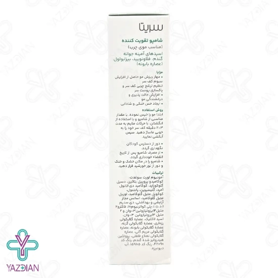 شامپو سریتا با کمک عصاره های گیاهی در فرمولاسیون خود، باعث خون رسانی به کف سر شده و ریشه و فولیکول موها را تقویت و تغذیه میکند.