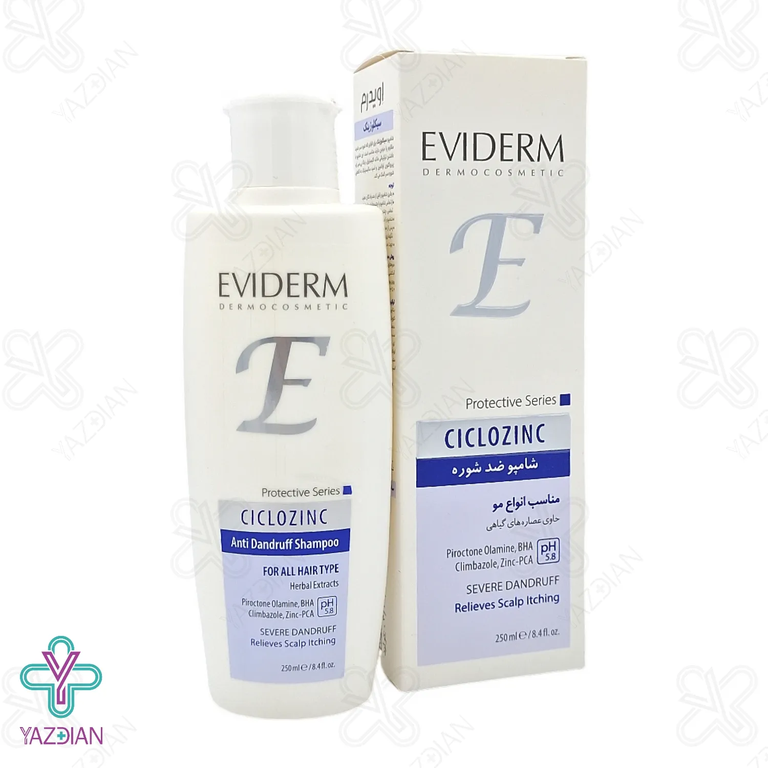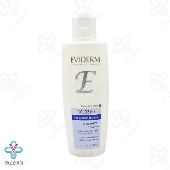 شامپو ضد شوره قوی انواع مو سیکلوزینک اویدرم(Eviderm Ciclozinc Shampoo For All Hair 250 ml) محصولی مناسب برای انواع مختلف مو می باشد و ضمن دارا بودن اثر ضد التهاب، ضد خارش و ضد قرمزی پوست سر، می تواند شوره های مقاوم و شدید را به بهترین نحو برطرف نماید.