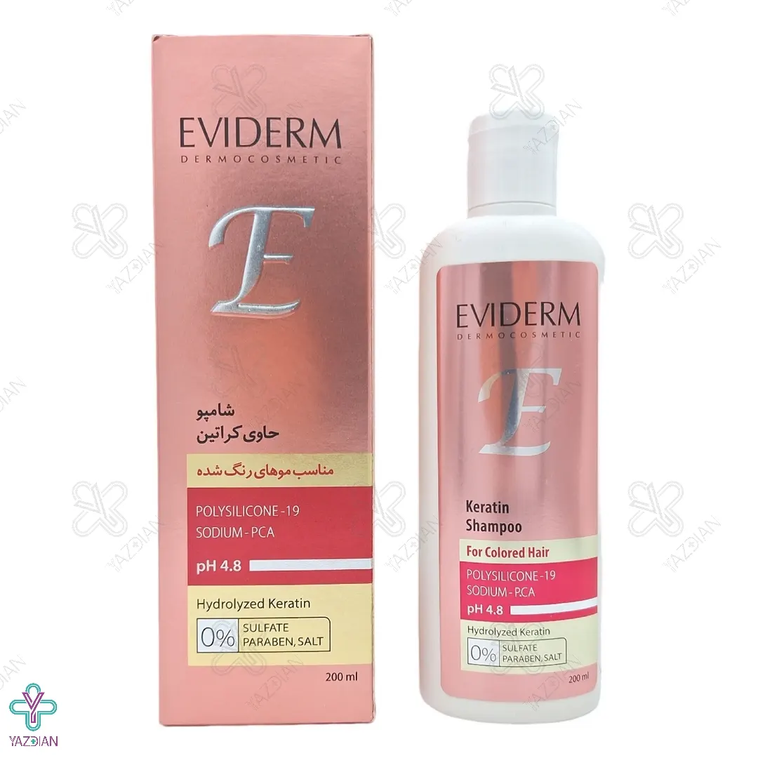 شامپو کراتینه موهای رنگ شده فاقد سولفات اویدرم 200 میلی لیتریک محصولی موثر جهت تثبیت رنگ مو – بهبود کراتین سازی – افزایش نرمی ساقه است.