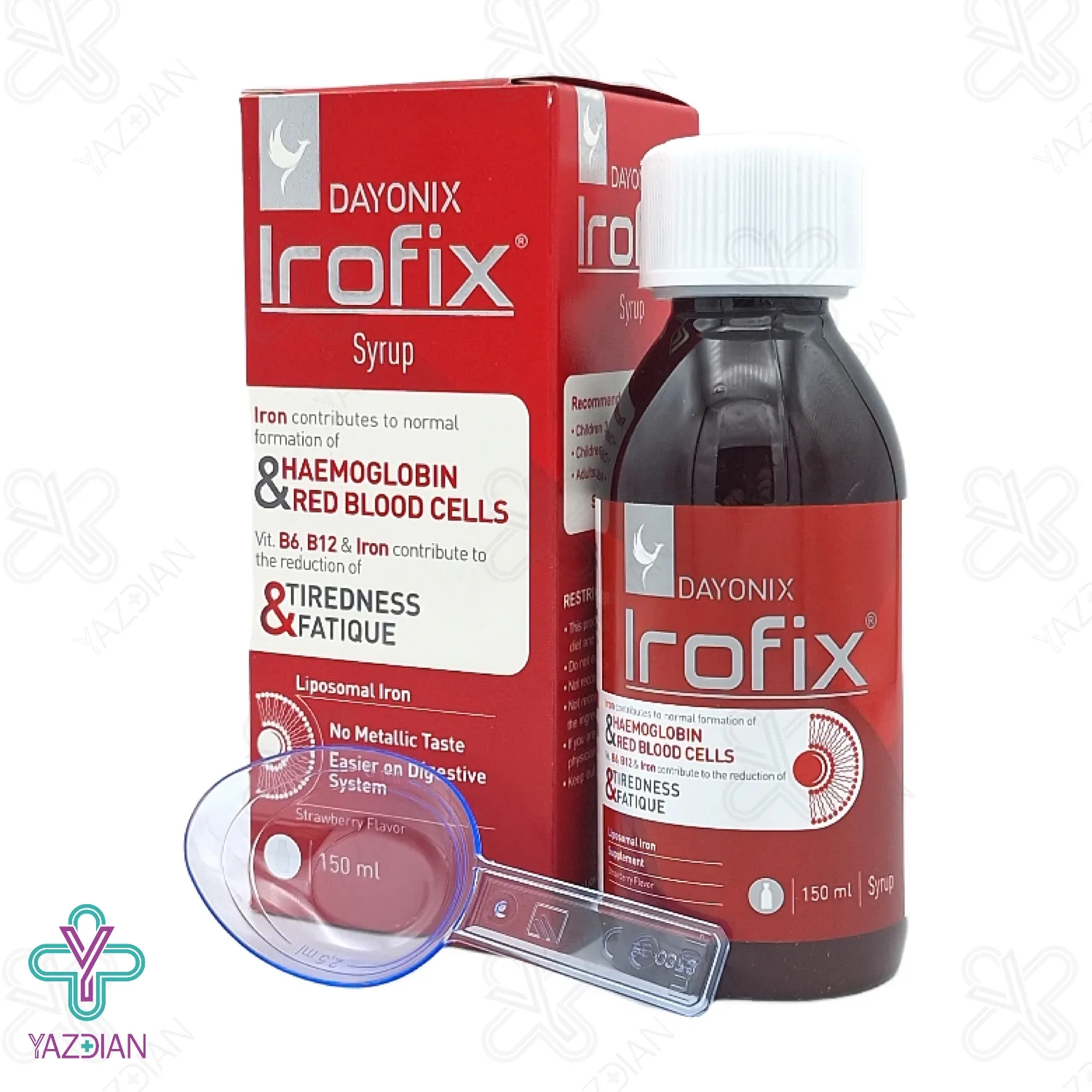شربت آهن آیروفکس دایونکس فارما یک نوع مکمل غذایی که به عنوان دارو برای کم خونی کودکان مورد استفاده قرار می گیرد و حاوی آهن لیپوزومال، ویتامین B12 و B6 و اسید فولیک است. این شربت به عنوان یک منبع غنی آهن برای افرادی که به دنبال افزایش سطح آهن در بدن خود هستند، توصیه میشود.