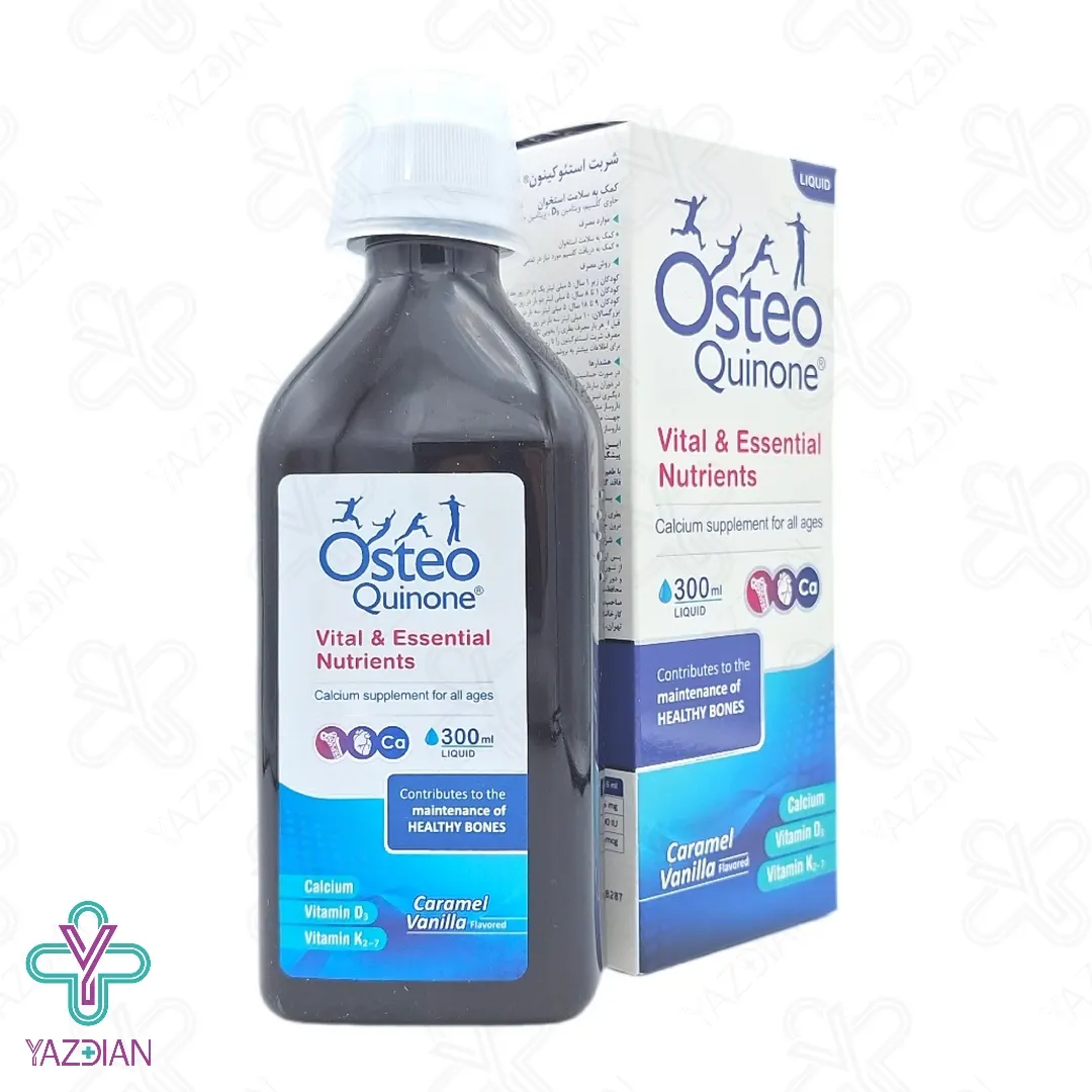 ماده استئوکینون، در واقع ترکیب ماده کلسیم، ک۲ و د۳ است که ترکیب این سه ماده باعث جذب کلسیم و استخوان سازی می شود.