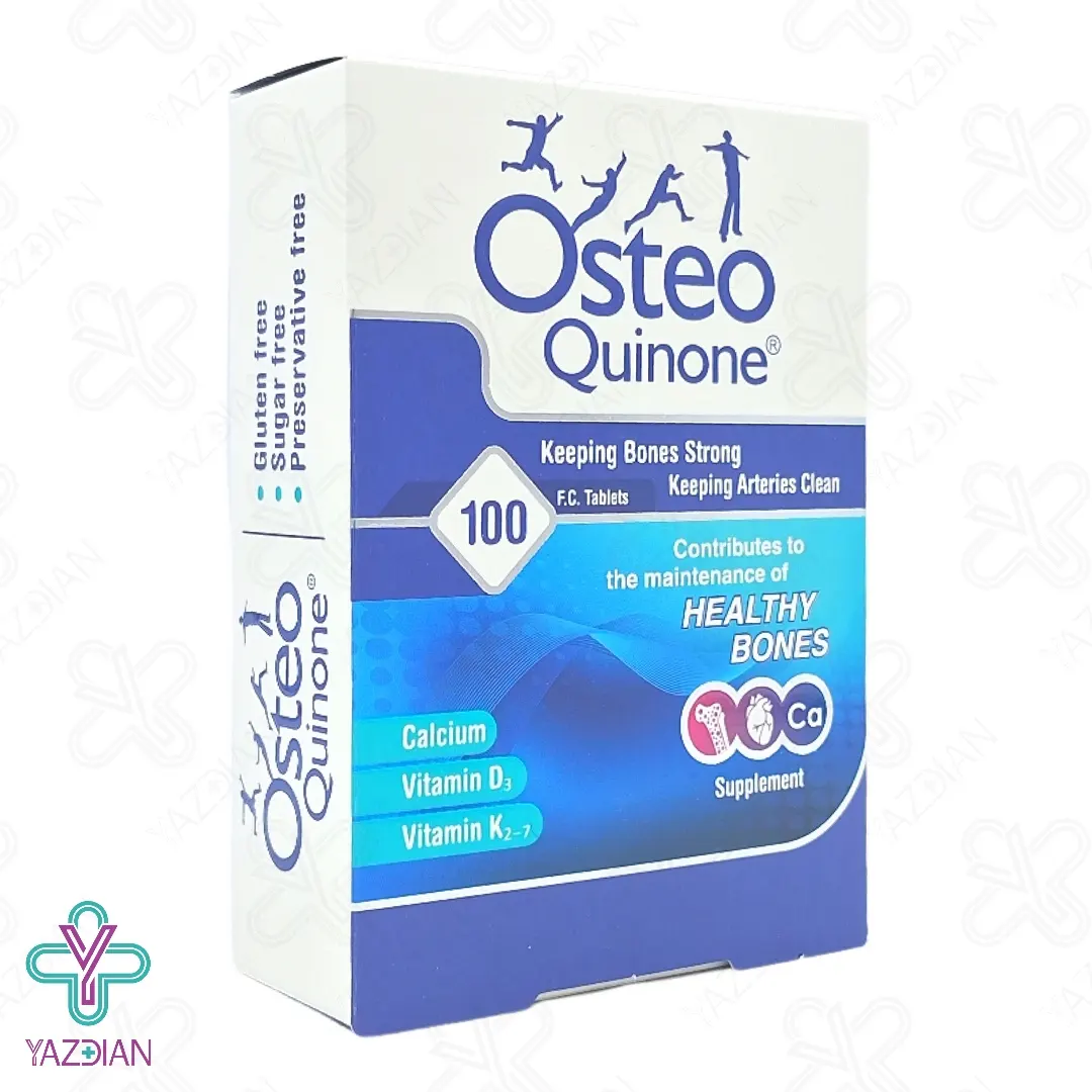 قرص استئوکینون یک مکمل غذایی است که به منظور حمایت از سلامت استخوان و حفظ سلامتی سیستم عصبی و عضلانی استفاده میشود. این محصول شامل ترکیبی از ویتامینها، مواد معدنی و گیاهان طبیعی است که بهبود جذب کلسیم و بهبود سلامت استخوان کمک میکند.