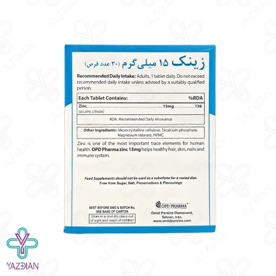 مقدار توصیه شده قرص زینک 15 میلی گرم او پی دی فارما را بدون مشورت پزشک یا متخصص افزایش ندهید و در جای خشک و خنک و دور از دسترس کودکان نگهداری کنید.