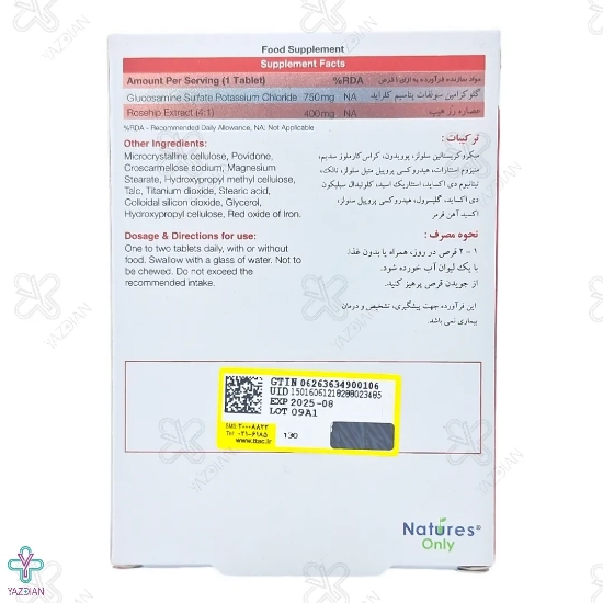 قرص غضروف ساز گلوکزامین 750 کارتیژن رز نیچرز اونلی - 30 عددی