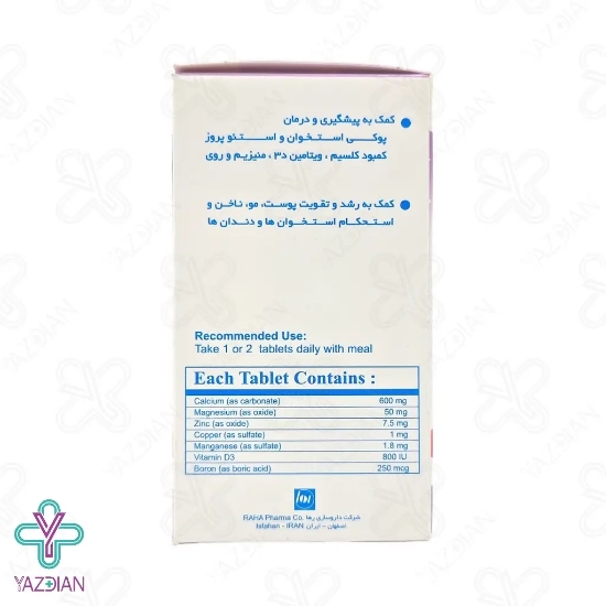 از مواد معدنی ارزشمندی نظیر کلسیم، منیزیم، مس، زینک، بور و منگنز در ترکیبات این محصول استفاده شده است و همچنین ویتامین D3 موجود در آن نیز می تواند جذب این مواد معدنی به ویژه کلسیم را در بدن افزایش دهد.
