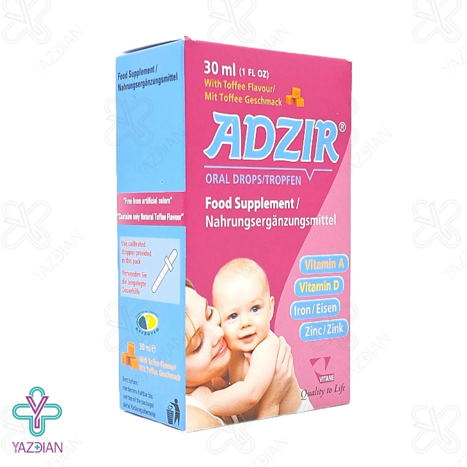 قطره ادزیر ویتان یک نوع محصول مکمل غذایی ویتامینه است که سرشار از ویتامین های آ و دی می باشد. این مولتی ویتامین کودکان یک محصول تقویت کننده سیستم ایمنی بدن نوزادان و کودکان نیز است.