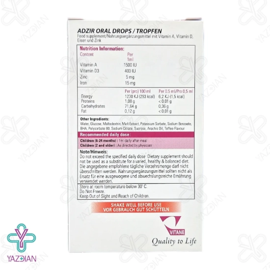 دوز های طراحی شده در ترکیبات قطره تقویت کننده ازدیر ویتان مناسب مصرف روزانه می باشد و مناسب نیازهای روزانه بدن تامین می گردد.