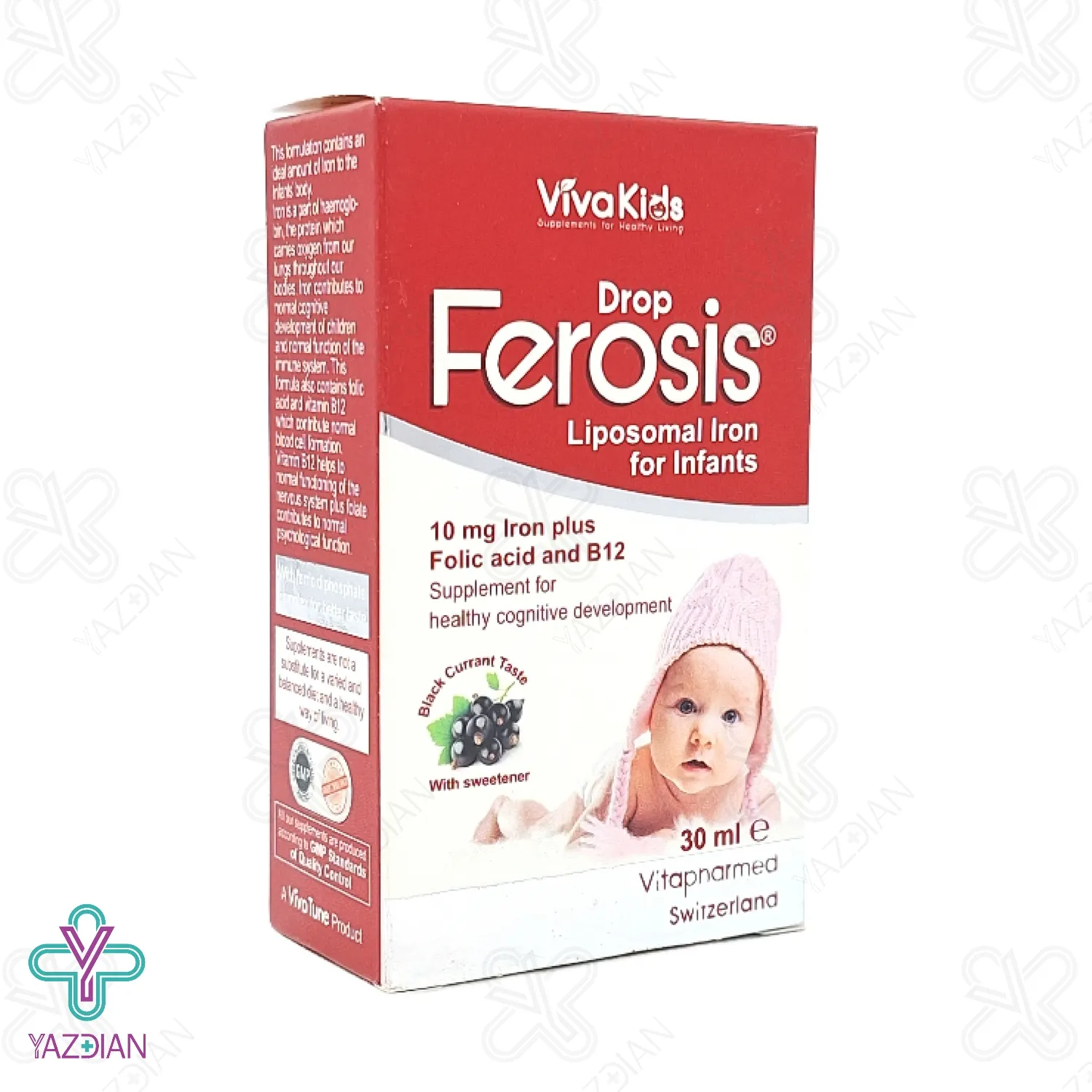 قطره آهن فروسیس ویوا کیدز Ferrous VivaKids Drops، یک مکمل غذایی است که حاوی آهن و ویتامین C می باشد. این محصول طراحی شده است تا به کودکان (از 6 ماه تا 1 سال) کمک کند تا نیازهای آهن و ویتامین C خود را تامین کنند. این دارو برای کم خونی کودکان تجویز می شود و یک محصول کاربردی و مناسب است.