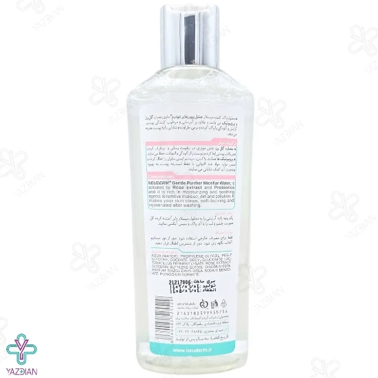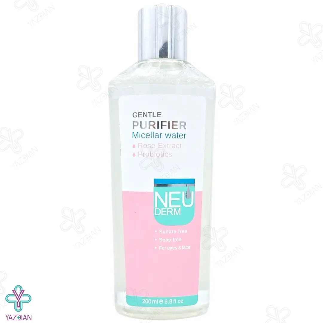 محلول پاک کننده میسلار واتر نئودرم حاوی دو ترکیب بسیار قوی نظیر عصاره گل رز و پروبیوتیک می باشد. این محلول یک شوینده ی ملایم است که برای پاک کردن آرایش و آلودگی از سطح پوست تهیه شده است و می تواند به خوبی سبوم و ناخالصی های پوستی را نابود کند.
