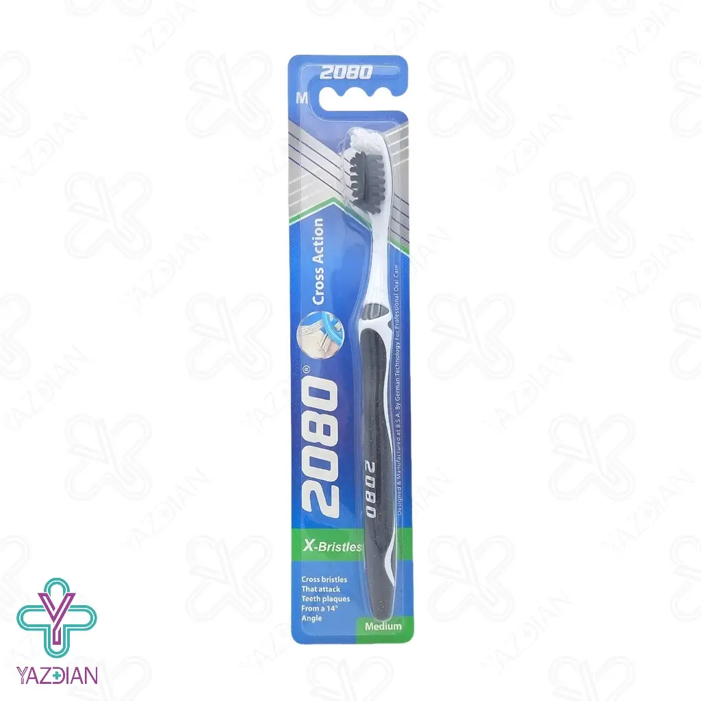 مسواک 2080 مدل Cross Action دارای برسی سخت با نخ های خاص و از جنس نایلون 6.12 می باشد که برای تمیز کردن دندان ها و جلوگیری از ایجاد جرم، محصول مناسبی می باشد.