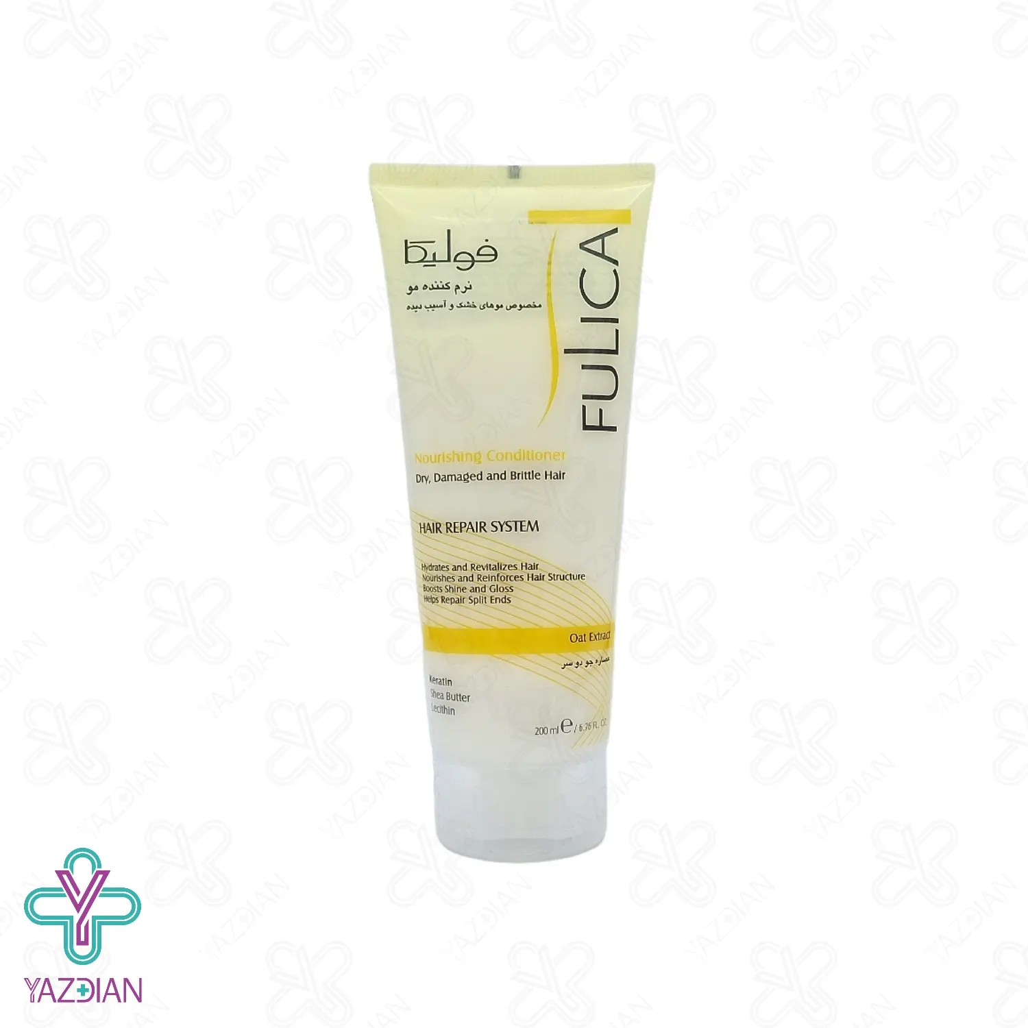 نرم کننده فولیکا مخصوص موهای خشک و آسیب دیده (Fulica Nourishing Hair Conditioner Lotion 200 ml) با دارا بودن لسیتین، کراتین، عصاره شیر جو دو سر و مواد نرم کننده می تواند موی سر را به خوبی آبرسانی و تقویت کرده و حالت زبری و شکنندگی آن را از بین ببرد.