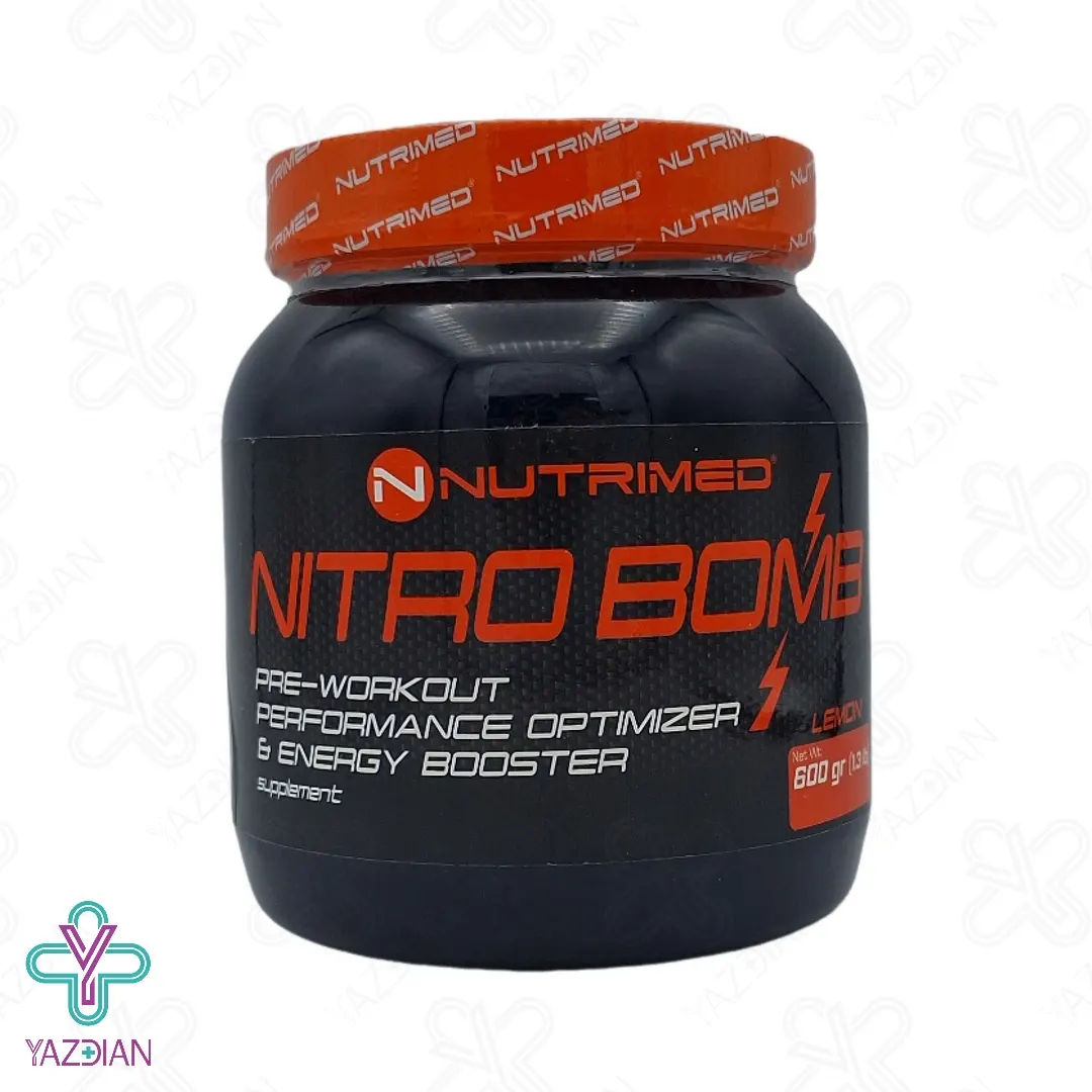 پودر نیترو بمب نوتریمد Nutrimed Nitro Bomb Powder شامل مواد محرک و آمینو اسیدهایی است که باعث افزایش انرژی، پمپاژ خون و قدرت عضلانی میشود. همچنین، این مکمل انرژی زا باعث رشد و ترمیم بافتهای عضلانی، تاخیر در خستگی هنگام تمرینات هوازی، افزایش تعریق و بهبود خون رسانی به بافتهای عضلانی میشود. ترکیبات موجود در نیترو بمب نوتریمد باعث افزایش سطح هورمون رشد نیز میشود.