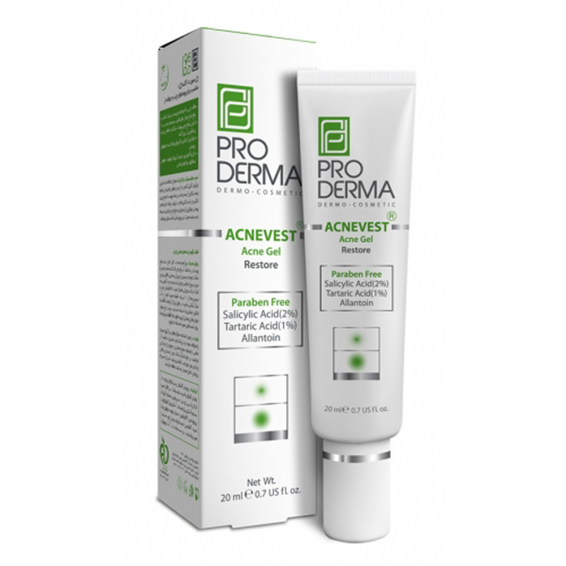 ژل ضد جوش پرودرما Pro Derma Acnevest Acne Gel 20 mlبه منظور رفع و درمان هرگونه جوشهای صورت مانند جوشهای سرسفید، عفونی، سرسیاه و یا زیر پوستی تجویز و مصرف میگردد.