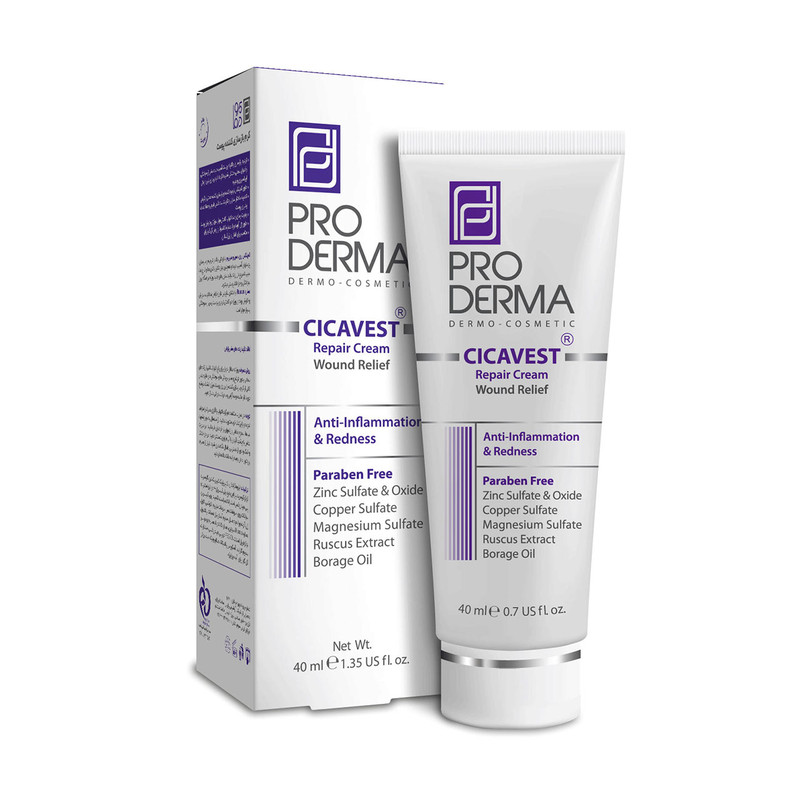 کرم پروودرما Pro Derma Cicavest Repair Cream 40 m یکی از بهترین محصولات مراقبتی و درمانی پوست است که با کمک ترکیبات خود میتواند عارضههای پوستی مانند: اگزما، بروز التهابات پوستی، خشکی شدید و یا عارضههایی که بر اثر لایه برداری و اپلاسیون به وجود میآید را ترمیم و بازسازی کند.