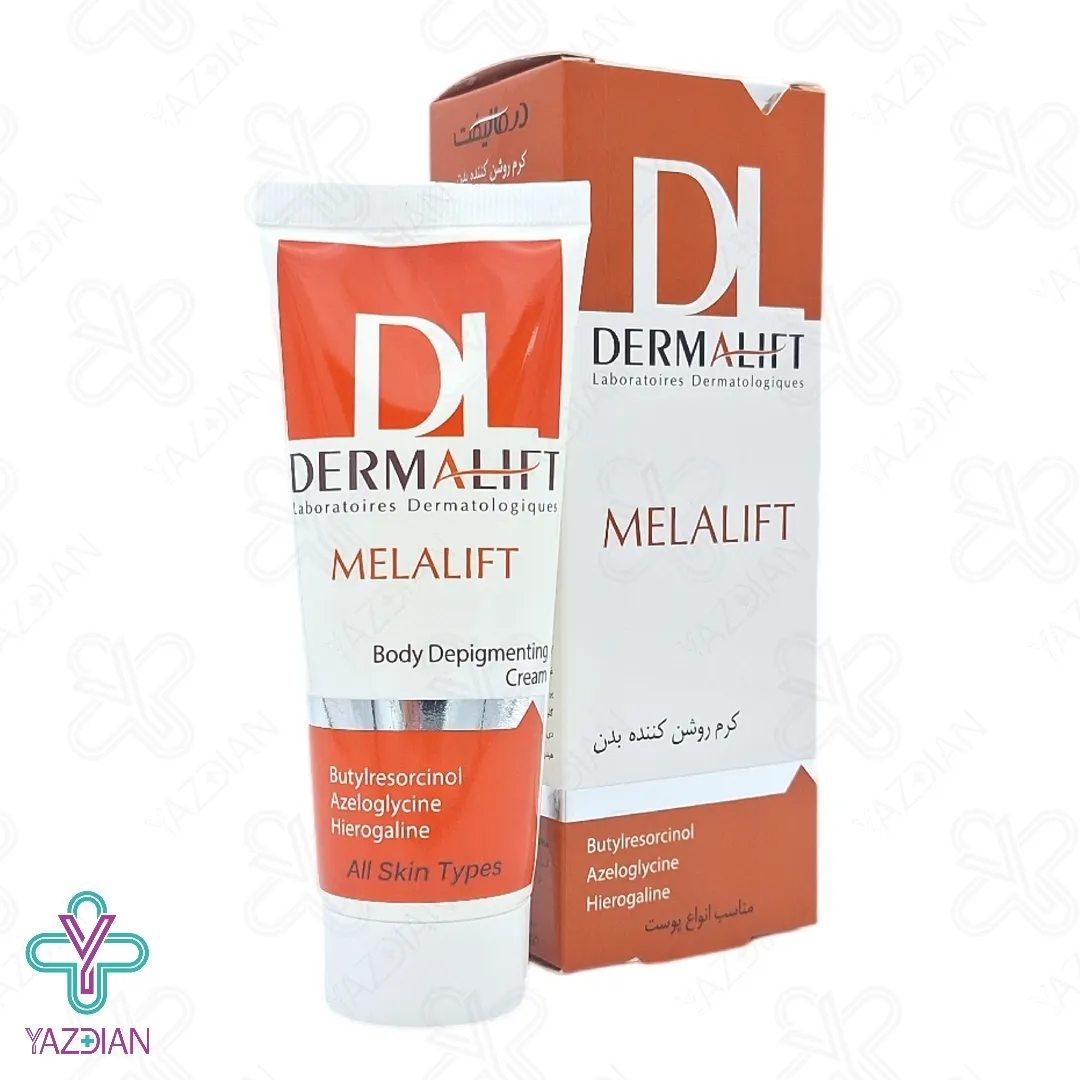 کرم روشن کننده بدن درمالیفت روشن کننده قوی پوست می باشد و از پوست در برابر اشعه ماورا بنفش نور خورشید به صورت کامل محافظت میکند. محصول نامبرده فوق برطرف کنند تیرگیهای پوست به علت عوامل مختلفی مثل نور خورشید، اثرات هورمونی، اثرات دوران بارداری، اثرات دارو و غیره می باشد.