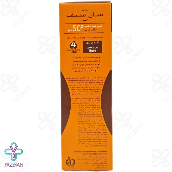 کرم ضد آفتاب پوست چرب 50 SPF فاقد چربی سان سیف به صورت بسیار تاثیرگذاری از پوست در مقابل تابشهای آسیب زای اشعه UVA خورشید به مدت طولانی محافظت می کند.