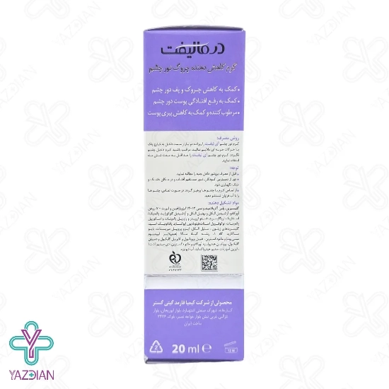 کرم ضد چروک دور چشم درمالیفت به عنوان یک مرطوب کننده و ضد پیری مخصوص پوست اطراف چشم نیز به خوبی عمل می کند. در ترکیبات کرم دور چشم آی لیفت درمالیفت از روغن گیاهی آووکادو، عصاره ماکا، کلاژن و کمپلکس ویتامینهای A و C و E و B5 مورد استفاده قرار گرفته است.