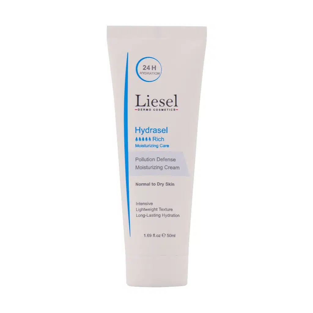 کرم مرطوب کننده و آبرسان قوی پوست خشک هیدراسل لایسل Liesel Moisturizing Cream Model Hydrasel Rich For Dry Skin با جذب سریع نرمی، درخشندگی و رطوبت رسانی طولانی مدت به پوست می دهد. با مکانیسم آبرسانی سه بعدی، تعادل آب در لایه های مختلف پوست و بازسازی ساختار آسیب دیده آن ایجاد می شود. ترکیبات آنتی اکسیدانی نظیر ویتامین C و میتوکینیل در این محصول دارای خواص ضد آلودگی و روشن کنندگی هستند.