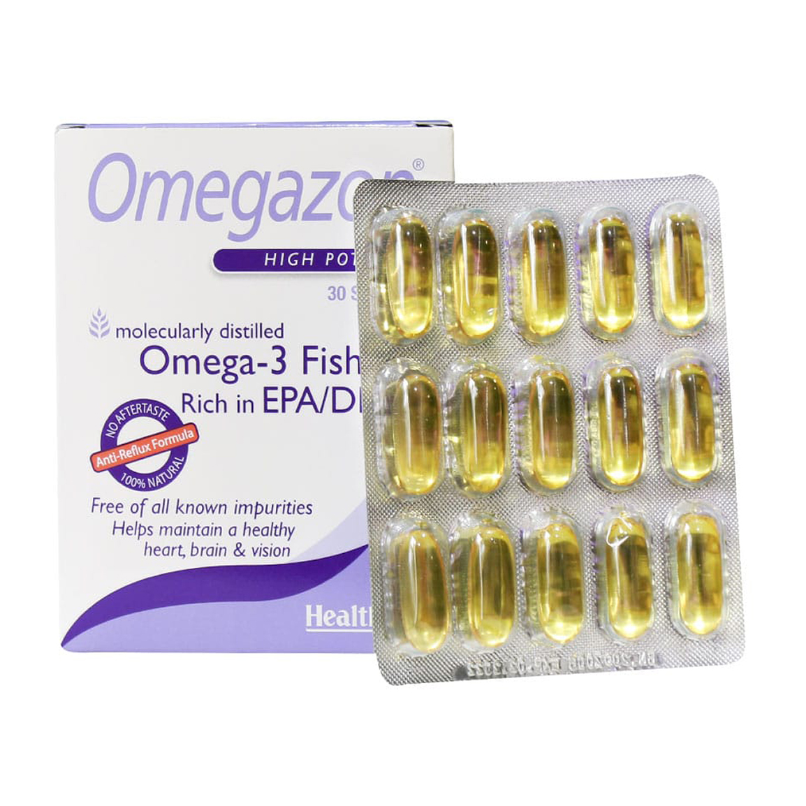کپسول امگا 3 امگازون هلث اید (Health Aid Omegazon 30 Caps) تهیه شده از روغن ماهی سالمون نروژی و دارا بودن ترکیباتی ویژه نظیر EPA، DHA و ویتامین E می تواند بیماری هایی نظیر اگزما، پسوریازیس، آسم، زوال عقل و از دست دادن حافظه را بهبود بخشیده و به رشد و نمو طبیعی بدن کمک نماید.