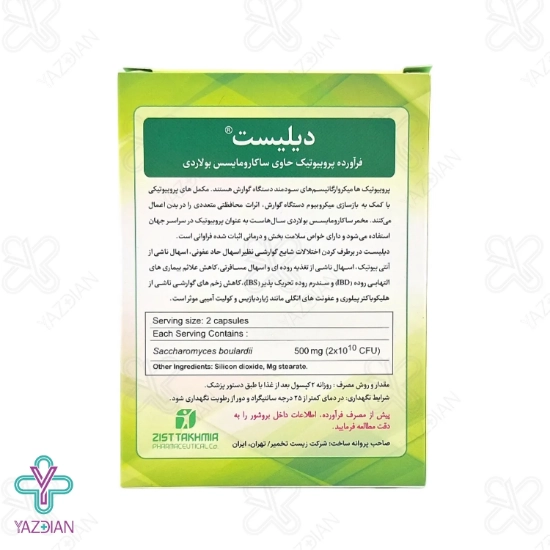 کپسول گوارش دیلیست یکی از محصولات دارویی درمانی می باشد که در درمان انواع اسهال مناسب می باشد و در کاهش علائم بیماری های التهاب روده و سندروم روده تحریک پذیربسیار موثر می باشد و به علت ضد میکروبی بودن و آنتی اکسیدانی باعث افزایش و تقویت سیستم ایمنی بدن می شود و دارای مخمر مفید ساکارومایسسبولاردی است.