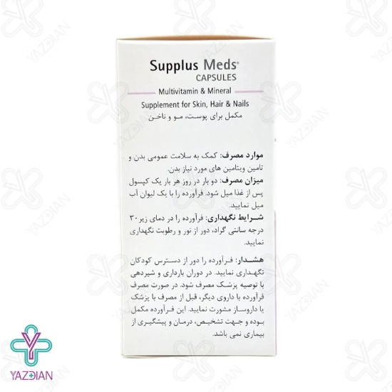 کپسول مولتی ویتامین مینرال ساپلاس مدز دارای فرمولاسیونی جدید می باشد و می تواند تمامی عناصر کمیاب و حیاتی مورد نیاز پوست، مو و ناخن را تأمین کند.