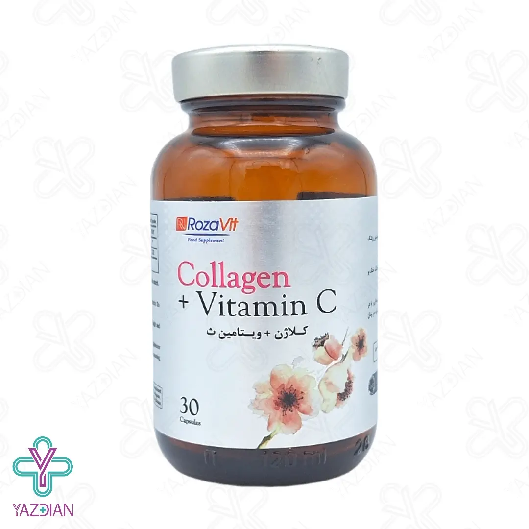 کپسول کلاژن پلاس با ویتامین سی رزاویت: کلاژن یکی از فراوانترین پروتئینها در بدن است و بخش بزرگی از پوست، مو و ناخنها را میسازد. از لحاظ فنی یک پلی پپتید، کلاژن شامل تلفیقی از اسیدهای آمینه مانند پرولین و گلیسین است، که در همهی بافتهای همبند در بدن وجود دارد.کلاژن یک اسید آمینه با زنجیره بلند و فراوانترین پروتئین در بدن است. از اسیدهای آمینهی منحصر به فردی مانند گلیسین، پرولین، هیدروکسی و آرژنین تشکیل شده و در طبیعت منحصرا در بافت حیوانی، به خصوص استخوانها و بافت همبند یافت میشود.مسئول خاصیت ارتجاعی پوست و قدرت مو و ثبات بافت همبند است. در واقع، پروتئین کلاژن تا ۳۰ درصد از کل پروتئین بدن و ۷۰ درصد از پروتئین پوست را میسازد.تولید کلاژن طبیعی بدن با افزایش سن کاهش مییابد و بسیاری از عوامل مانند سبک زندگی مدرن (مانند استرس، رژیم غذایی نامناسب، عدم تعادل سلامت روده، و غیره) میتواند توانایی بدن در ساخت کلاژن را کاهش دهد.ویتامین C در بدن در تشکیل کلاژن در استخوان ها، غضروف، عضله و رگ های خونی اهمیت داشته و نیز در جذب آهن نیز شرکت می کند.تأثیر ویتامین C در تشکیل کلاژن مهم ترین نقش آن است.