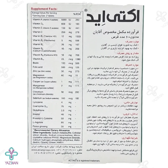 قرص تقویت باروری آقایان اکتی اید ابیان دارو - 60 عددی