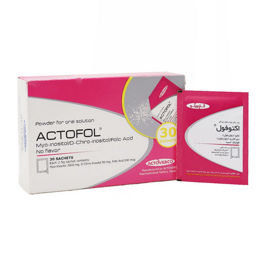 ساشه اکتوفول اکتوورکو (Actoverco Actofol sachets – 30 pcs) یک مکمل غذایی برای بانوان می باشد این محصول موجب تقویت باروری و عملکرد بهتر سیستم تولید مثل زنان می شود فولیک اسید موجود در این محصول موجب بهبود کیفیت تخمک ها شده و از نقص های لوله عصبی جنین جلوگیری می کند ساشه اکتوفول چرخه قاعدگی در زنان را تنظیم کرده که موجب افزایش شانس بارداری و سلامت عمومی زنان می شود و هم چنین موجب تقویت عملکرد تخمدان ها و بهبود تخمک گذاری شده و در نتیجه احتمال بارداری افزایش پیدا می کند این محصول موجب بهبود علائم سندروم تخمدان پلی کیستیک شده و موجب تنظیم هورمون ها و عملکرد تخمدان ها می شود.