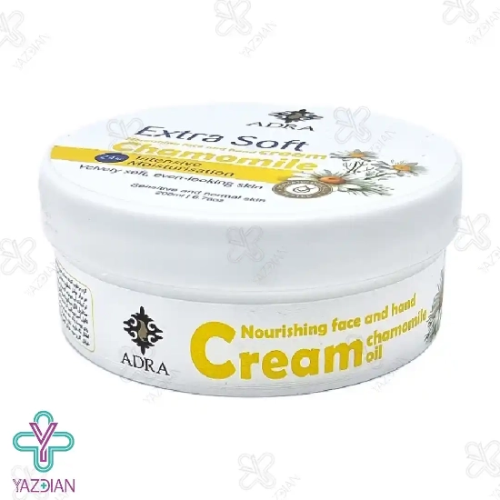 کرم مرطوب کننده حاوی بابونه از برند آدرا مناسب برای پوستهای حساس و معمولی و قابل مصرف برای دست صورت و بدن