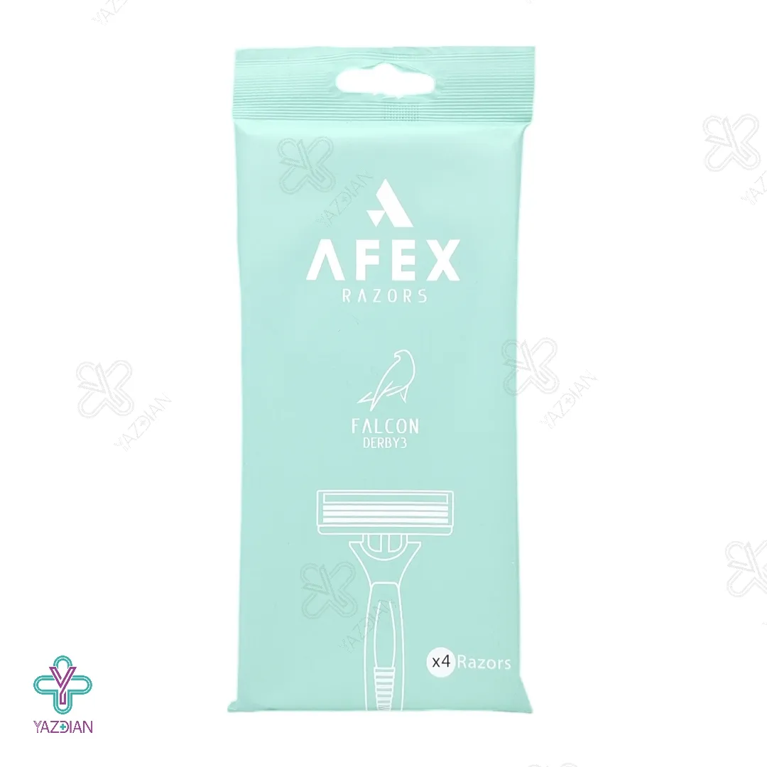 خودتراش مردانه سه لبه افکس مدل فالکون - 4 عددی (afex falcon razors) دارای سه لبه نزدیک به هم حرفه ای می باشد که اصلاح پوستی آسان و تمیز را با آن تجربه خواهید کرد. هر تیغ دارای نوار روان کننده می باشد که اصلاح را صاف و یکدست می کند. دسته این تیغ ضد لغزش است و یکی از آسان ترین روش ها جهت از بین بردن موهای زائد صورت و بدن می باشد. سری چرخشی این خود تراش سبب شده است تا از بین بردن موهای زائد آسان شود و این تیغ چند بار مصرف باشد. در نوار های این تیغ عصاره آلوئه ورا بکار برده شده است و سبب می شود تا رطوبت رسانی به پوست انجام شود و خاصیت ضد التهابی فوق العاده ای هم داشته باشد.