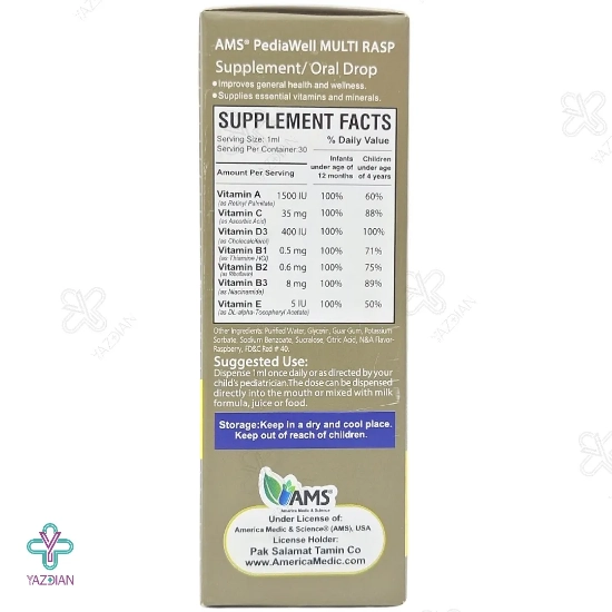 قطره مولتی ویتامین ای ام اس پدیاول (AMS Multi Vitamin Pedia Well Drops 30 ml) یکی از بهترین مولتی ویتامین های موجود در داروخانه هاست که با دارا بودن ویتامین های مورد نیاز بدن کودکان، می تواند مواد مغذی مورد نیاز بدن آنان را تأمین کرده و از سلامت عمومی بدن کودکان محافظت نماید.