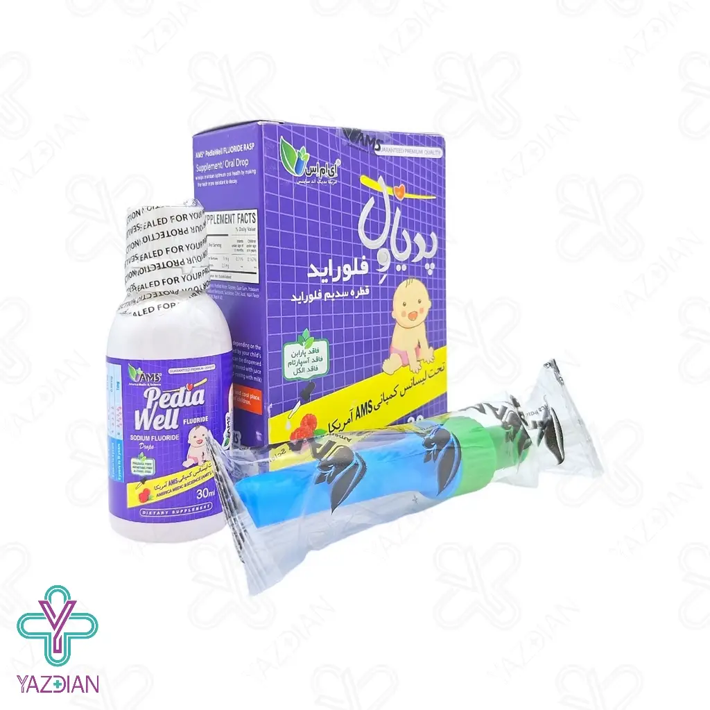 قطره خوراکی پدیاول فلوراید ای ام اس - 30 میلی لیتر (AMS Pedia Well Sodium Fluoride Drops 30 Ml) با برخورداری از فلوراید در مقادیر کم، مقاومت و استحکام مینای دندان را دو چندان کرده به حدی که از 20الی 40 درصد پوسیدگی های دندانی جلوگیری می کند.