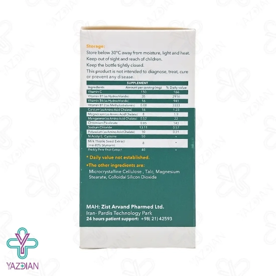 کپسول کبد آماتیور اروند فارمد (Arvand pharmed amateur liver capsules – 60 pcs)دارای ترکیبات موثری است که موجب بهبود عملکرد کبد و تامین الکترولیت ها شده این محصول علی الخصوص برای افرادی که الکل مصرف می کنند بسیار مناسب می باشد این محصول دارای ویتامین ها و مواد مغذی بوده که دارای خاصیت ضد التهابی و آنتی اکسیدانی می باشد و از سلول های کبد در برابر اثرات مخرب رادیکال های آزاد محافظت می کند ویتامین C موجود در این محصول دارای خاصیت آنتی اکسیدانی بوده و موجب تقویت سیستم ایمنی شده و هم چنین خاصیت ضد التهابی نیز دارد کلسیم موجود در این محصول موجب استحکام استخوان ودندان ها شده و در فرآیندهای عصبی، انقباض عضلانی، انعقادخون، ترشح هورمون ها از جمله انسولین نقش دارد کلسیم هم چنین موجب کاهش علائم ترک مصرف الکل می شود منیزیم موجود در این محصول دارای خاصیت ضد درد، ضد التهاب و آنتی اکسیدانی بوده و در بهبود کنترل قند خون، کنترل فشار خون و محافظت از سلول های عصبی بسیار نقش دارد افرادی که الکل مصرف می کنند با کاهش ذخایر منیزیم در بدن مواجه هستند و در نتیجه کاهش منیزیم ریسک سرطان کبد نیز افزایش پیدا می کند منگنز نیز در این محصول موجود می باشد که موجب رشد سلولی، تنظیم سیستم ایمنی، متابولیسم کربوهیدرات، لیپید و پروتئین شده و نقش موثری در فعالیت های آنزیمی داشته و هم چنین دارای خاصیت ضد التهابی و آنتی اکسیدانی بوده که برای عملکرد طبیعی کبد ضروری می باشد.