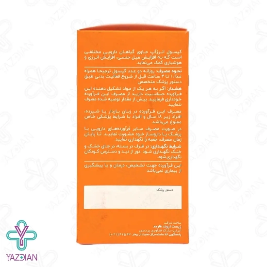 کپسول تقویت انرژ آپ زیست اروند فارمد (Arvand pharmed Energ Up capsules - 60 pcs) دارای ترکیبات گیاهی و موثری است که برای آقایان و خانم ها مناسب می باشد و موجب تقویت قوای جنسی می شود و هم چنین موجب بهبود عملکرد فیزیکی، افزایش انرژی و تنظیم هورمون ها می شود این محصول با ترکیباتی که دارد موجب افزایش جریان خون و بهبود عملکرد عضلات شده و ضمن تقویت سیستم ایمنی موجب کاهش اضطراب و استرس می شود جینسینگ موجود در این محصول دارای خاصیت آنتی اکسیدانی بوده و ضد التهاب می باشد عصاره شاخ بز موجود در این محصول ضمن افزایش میل جنسی موجب بهبود جریان خون می شود پودر بسفایج با خاصیت آنتی اکسیدانی که دارد اثرات مخرب رادیکال های آزاد را خنثی کرده و التهاب را کاهش می دهد عصاره خارخاسک و پودر تونکات علی موجب افزایش تستوسترون شده و عملکرد جنسی را بهبود بخشیده و موجب کاهش استرس می شود ال آرژنین نیز در این محصول موجود می باشد که موجب افزایش گردش خون شده و عملکرد عضلات را تقویت می کند.