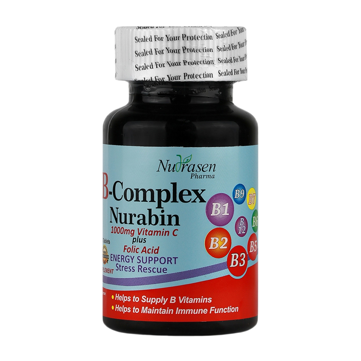 قرص ویتامین بکمپلکس نورابین نوتراسن - 30 عددی (B-Complex Nurabin Nutrasen 30Tablets) با برخورداری از ویتامینهای گروه ب در کنار ترکیبات ارزشمندی مثل پابا، سلنیوم و ویتامین C، شرایط لازم را جهت حفظ متابولیسم طبیعی بدن فراهم می کند. بعلاوه با تحریک ساخت گلبول های قرمز در بدن، سطح انرژی بدن را بالا می برد و از بین برنده عالی خستگی هاست. همچنین عملکرد سیستم عصبی مرکزی را تقویت کرده و در تقویت حافظه نیز نقش دارد.