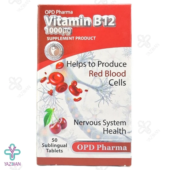 قرص زیرزبانی ب 12 او پی دی فارما (OPD Pharma B12 1000 Vitamin 50 Sublingual Tabs) با دارا بودن 1000 میکروگرم ویتامین B12 در ترکیبات خود، می تواند ویتامین B12 مورد نیاز بدن را تأمین نماید و یکی از بهترین دارو های تقویتی بدن می باشد. این مکمل همچنین ضمن اثرگذاری در تقویت سیستم عصبی، به ساخت گلبول قرمز کمک کرده و از بروز کم خونی در بدن ممانعت به عمل می آورد.