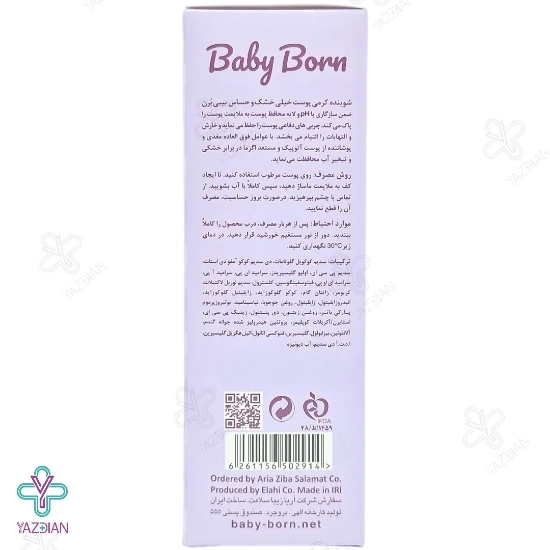 این محصول با برخورداری از ترکیبات گیاهی از جمله پروتئین هیدرولیز شده جوانه گندم، روغن جوجوبا و روغن زیتون، رطوبت لازم موها را تامین می کند. اشوینده کرمی پوست خشک و حساس Baby Born فرمولاسیون کاملا ضد حساسیت داشته و فاقد پارابن، عطر و مواد صابونی است. PH این محصول کاملا سازگار با پوست های حساس بوده و از سلامت پوست حفاظت می کند.