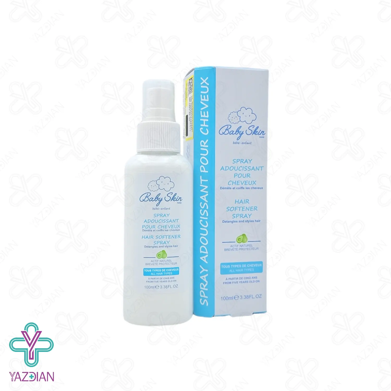 اسپری نرم کننده و باز کننده گره مو بیبی اسکین (Baby skin hair softenerls spray –100 ml) مناسب برای کودکان می باشد که خواص نرم کنندگی دارد، این محصول مناسب کودکان 5 سال به بالا می باشد.