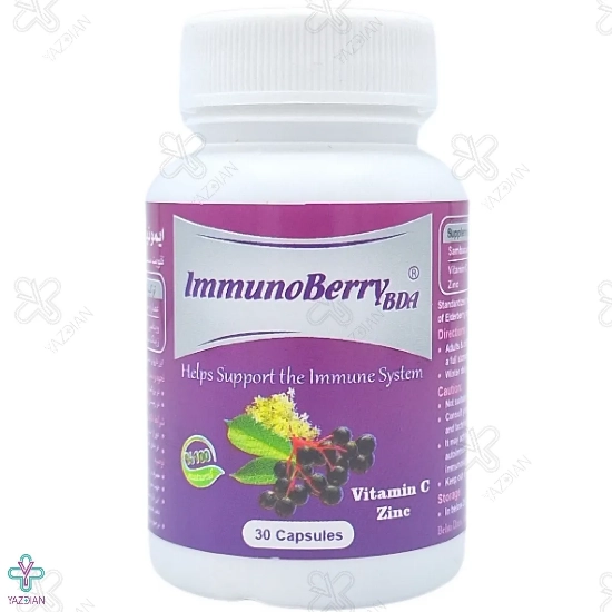 کپسول تقویت سیستم ایمنی ایمونوبری بهتا دارو - 30 عددی (Behta Daru Immunoberry BDA 30 Caps) یک مکمل بسیار عالی برای تقویت سیستم ایمنی بدن می باشد. این کپسول صد در صد گیاهی است و حاوی عصاره ی خشک میوه گیاه الدربری و ویتامین C و زینک می باشد. استفاده از آن در پیشگیری از بیماری های ویروسی همچون سرماخوردگی و آنفولانزا موثر است و در صورت ابتلا به این بیماری ها باعث بهبودی سریع تر علائم می شود.