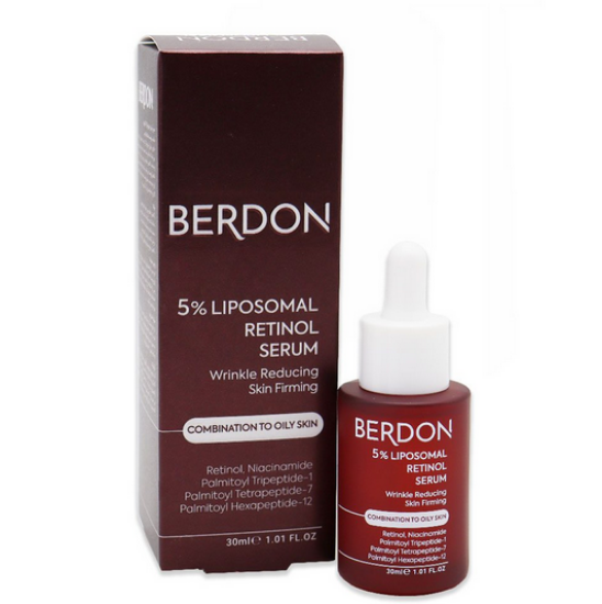 سرم رتینول 5% پوست چرب بردون (Berdon serum retinol 5% for oily skin – 30 ml) به واسطه ترکیبات موثری که دارد موجب کاهش و رفع چین و چروک های پوست صورت شده وموجب سفتی و افزایش کشسانی پوست می شود این محصول با فرمولاسیون منحصر به فردی که دارد موجب تحریک کلاژن سازی و جوان سازی پوست می شود سرم رتینول بردون با بافت سبکی که دارد سریع در پوست جذب و هیچ گونه حس چربی بر روی پوست ایجاد نمی کند و با کنترل ترشح چربی موجب جلوگیری و رفع جوش و التهاب می شود سرم این محصول موجب کاهش چین و چروک های عمیق پوست شده و رنگ پوست را صاف و یکنواخت می کند و موجب روشن و بازسازی پوست می شود رتینول مشتق ویتامین آ بوده که در جوان سازی و روشن کردن پوست بسیار موثر می باشد و موجب افزایش سرعت نوسازی سلول ها و تحریک تولید کلاژن می شود این محصول به واسطه دارا بودن نیاسین آمید موجب کاهش رنگ دانه پوست و رفع تیرگی و یکنواخت شدن رنگ پوست می شود.