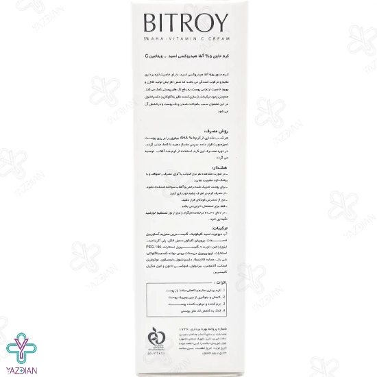 کرم روشن کننده آلفا هیدروکسی اسید 5 درصد ویتامین ث بیتروی - 50 میلی لیتر