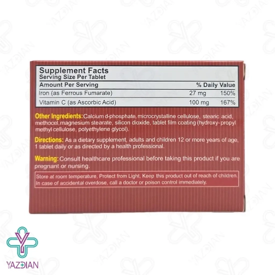 قرص آهن با ویتامین ث برونسون (Tabs iron withe vitamin c bronson) یکی از محصولات مکمل غذایی است که به منظور رفع و یا درمان کم خونی تجویز و مصرف میشود. این نوع قرص آهن برونسون، با کمک ویتامین ث، باعث جذب بهتر و بیشتر ماده معدنی آهن شده و سرعت بیشتری را برای درمان آنمی، فقر آهن و یا کم خونی به وجود خواهد آورد. از دیگر مزایای مصرف قرص آهن با ویتامین ث برونسون، میتوان به بهبود عملکرد دستگاه گردش خون و تولید هموگلوبین خون اشاره کرد که در نتیجه خونرسانی به تمامی بافتهای بدن سریعتر انجام میشود و انرژی مورد نیاز بدن را تامین خواهد کرد.